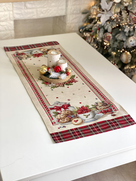 Christmas Table Runner «Sweet Dreams» with Golden Lurex - Premium Gobelin