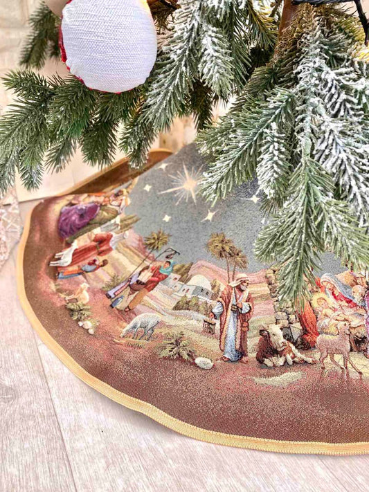 Christmas Tree skirt «Christmas Glow» with Golden Lurex - Luxury Tapestry