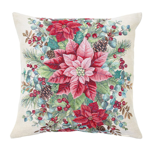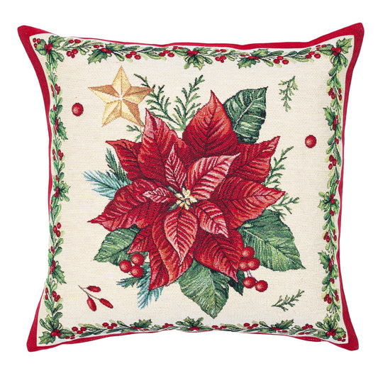 Christmas Pillow cover «Red Poinsettia» with Golden Lurex - Luxury Tapestry