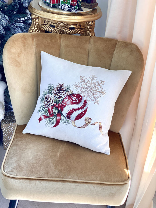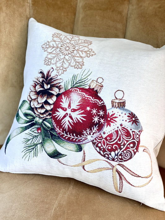 Christmas Cushion cover «Holly & Ivy Charm» with Silver Lurex - Luxury Tapestry