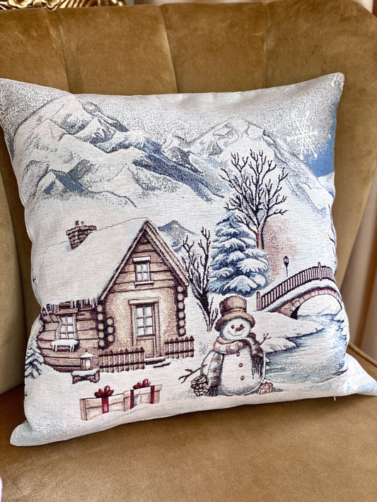 Christmas Pillow cover «Snowy Cabin Charm» with Microfibre - Premium Gobelin