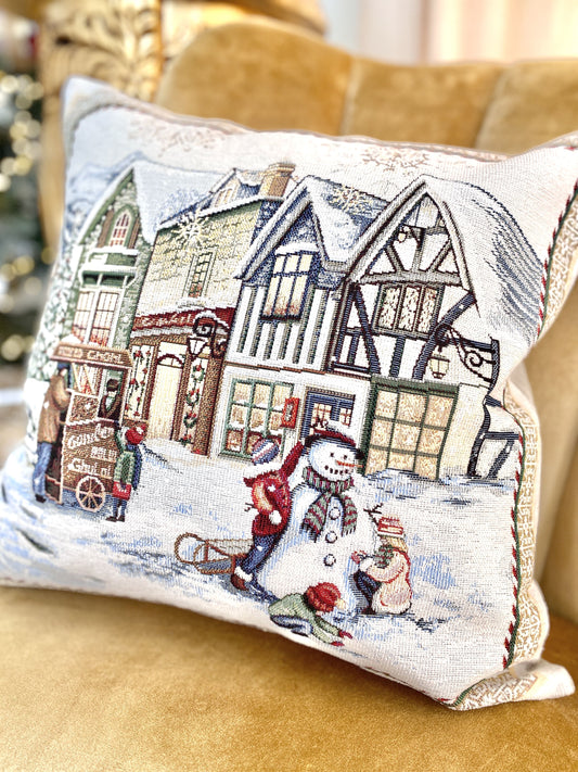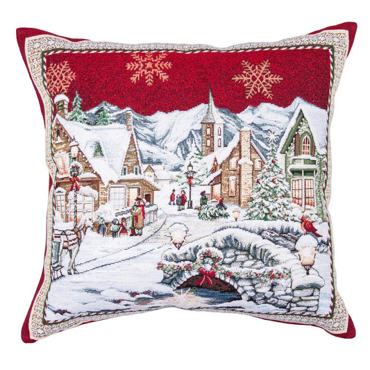 Winter Holiday tapestry cushion cover «Snowy city» With microfibre