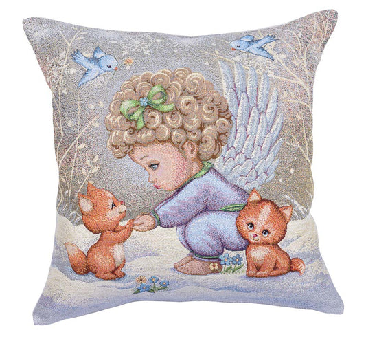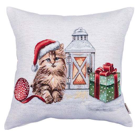 Winter Holiday tapestry cushion cover «Christmas kittens» With microfibre & silver lurex