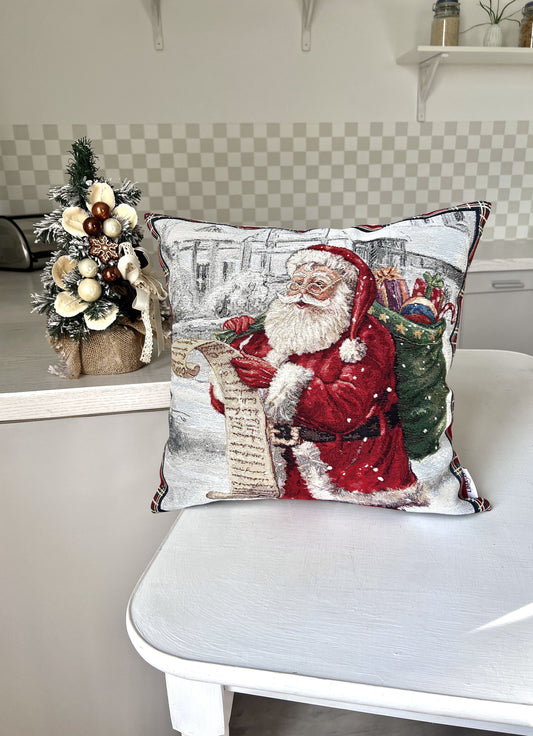 Christmas tapestry cushion cover «Santa’s letter» with golden thread
