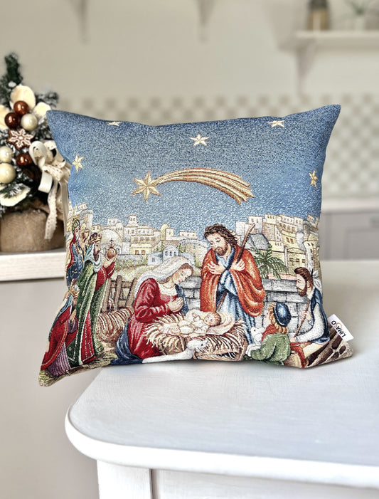 Christmas tapestry cushion cover «NAZARET» with golden thread