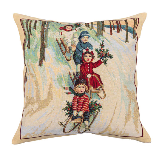 Winter Holiday tapestry cushion cover «Slitta» without lurex