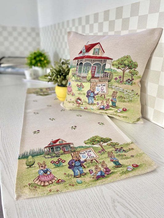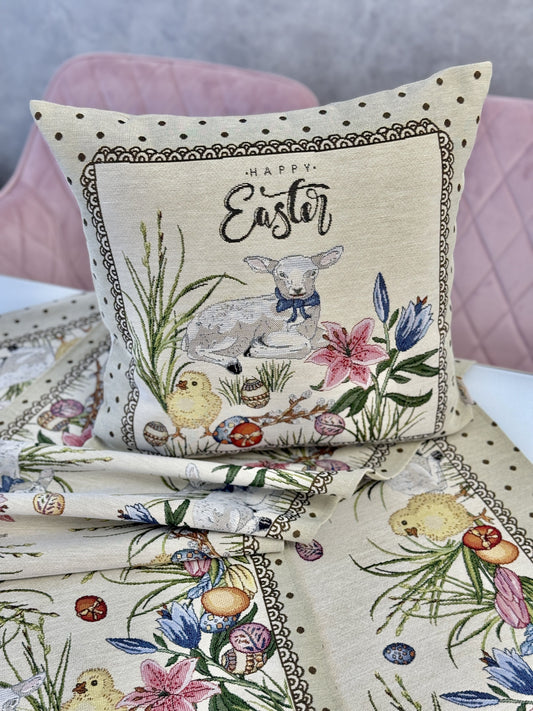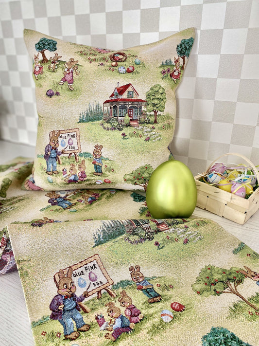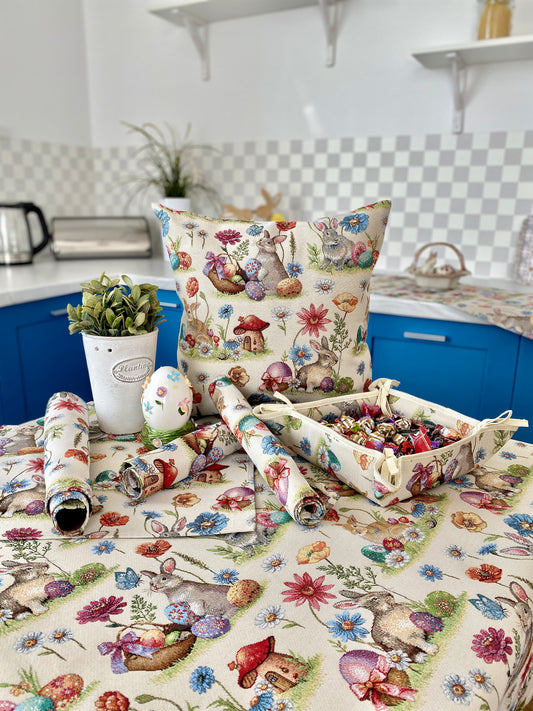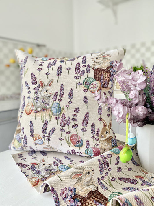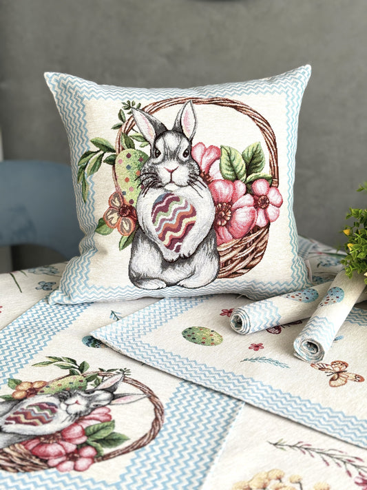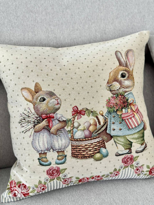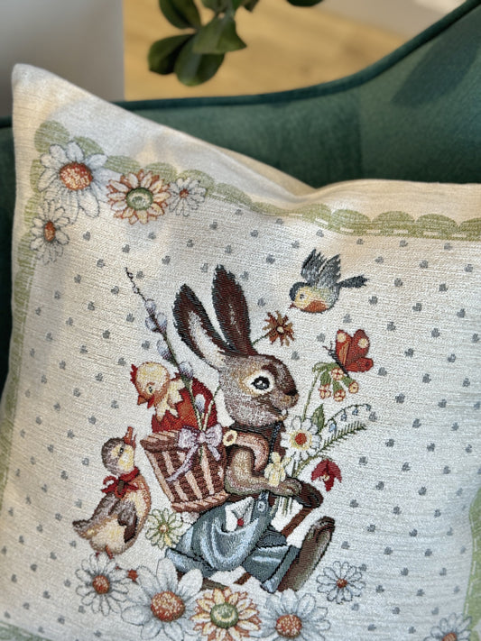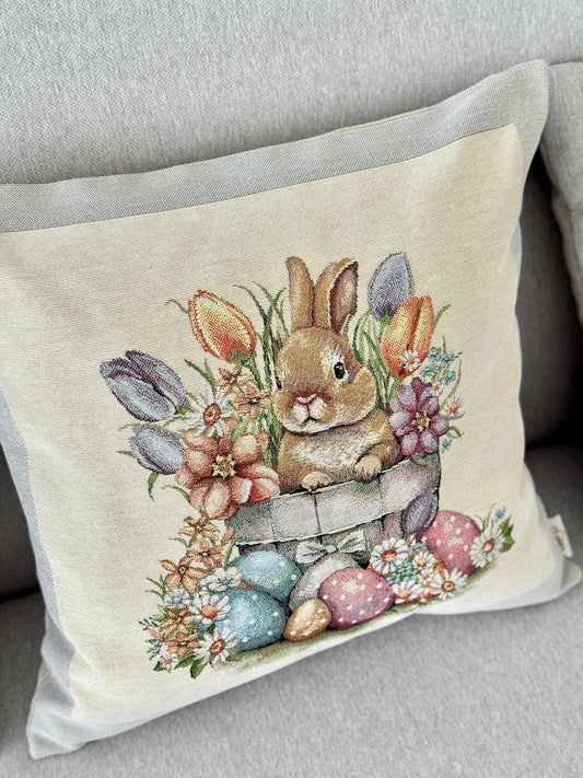 Easter tapestry cushion cover «Bunny in flowers-2»
