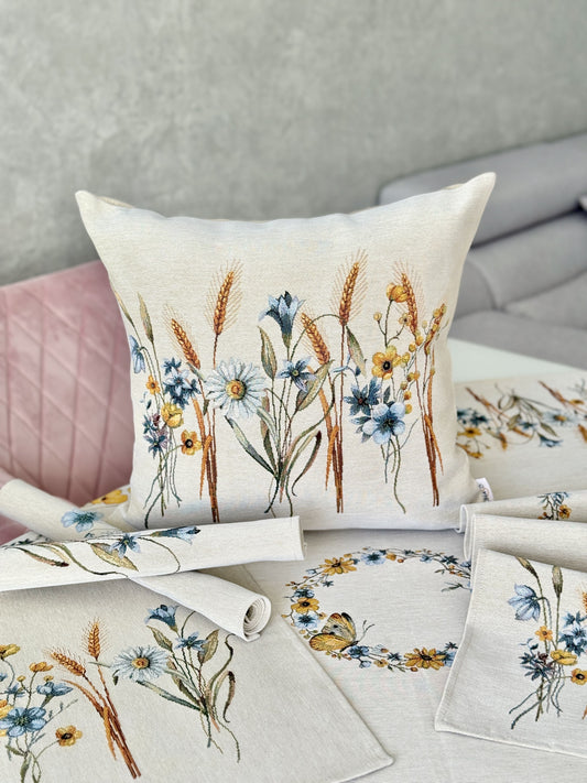Easter tapestry cushion cover «Bunny in daisies» with microfibre