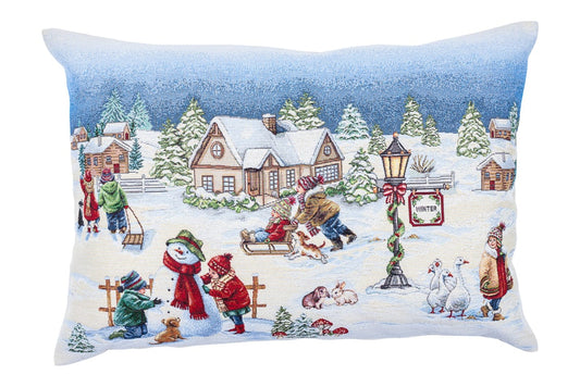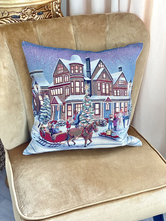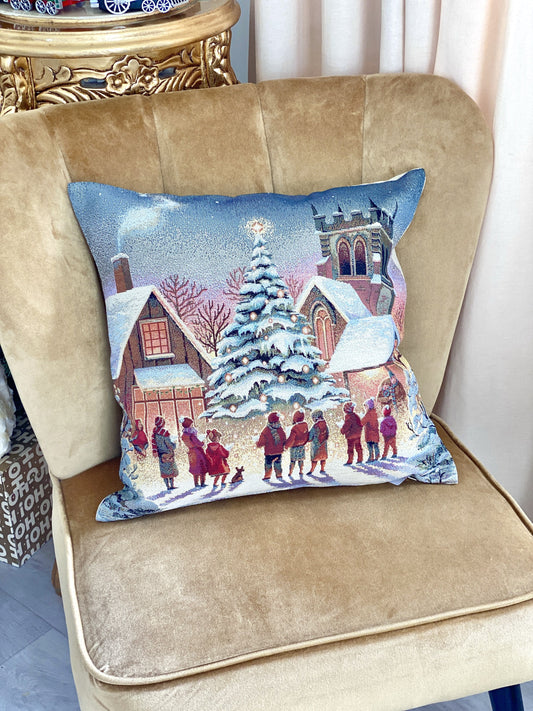 Christmas Cushion cover «Enchanted Carol Nights» with Golden Lurex - Luxury Tapestry