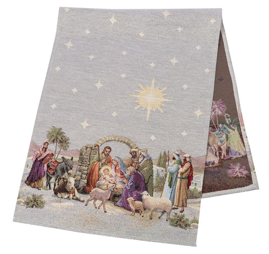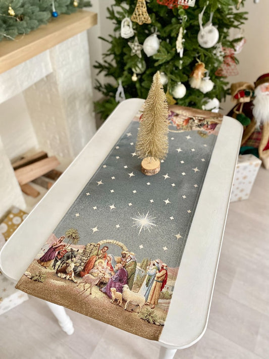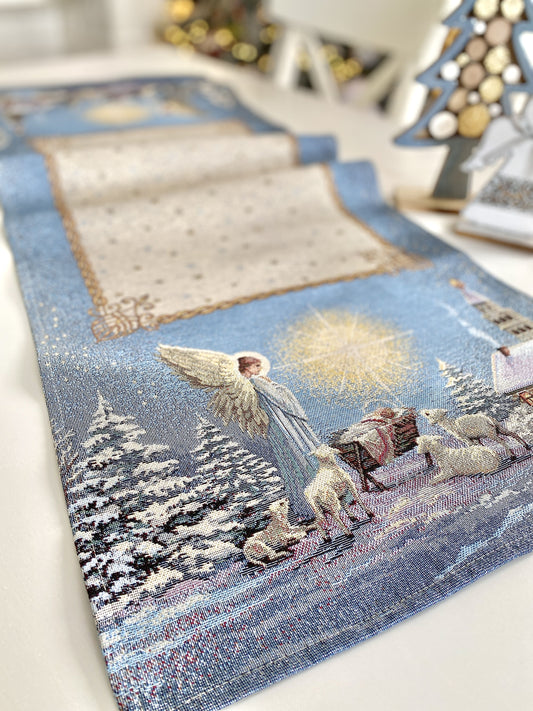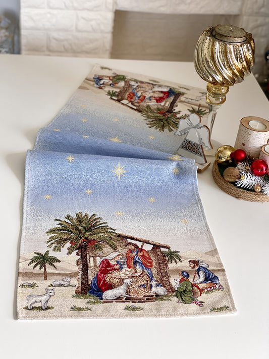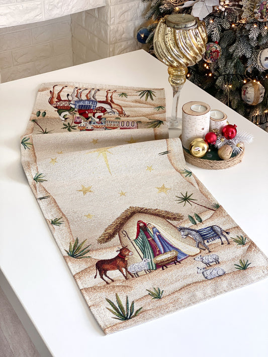 Christmas Tapestry Table runner «Nativity scene» with golden thread