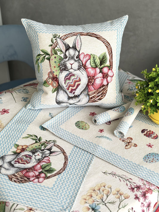 Easter tapestry table runner «Blue Bunnies»