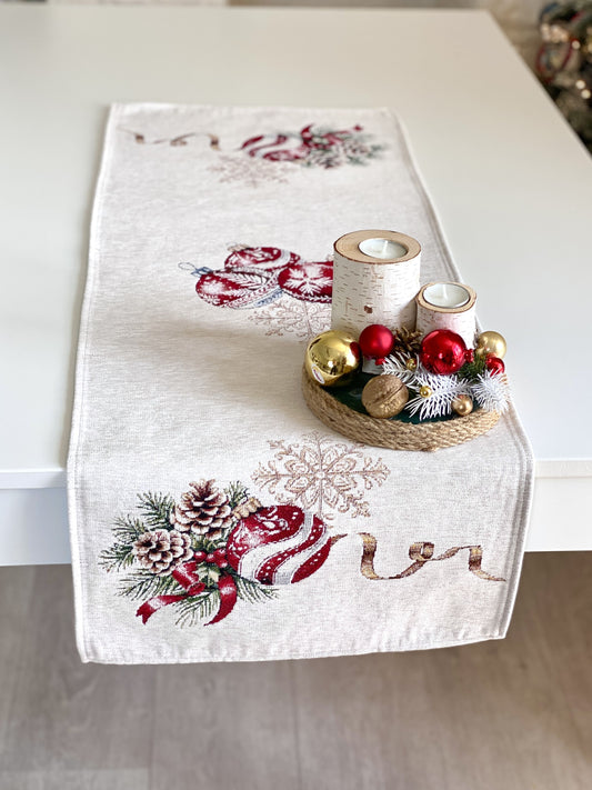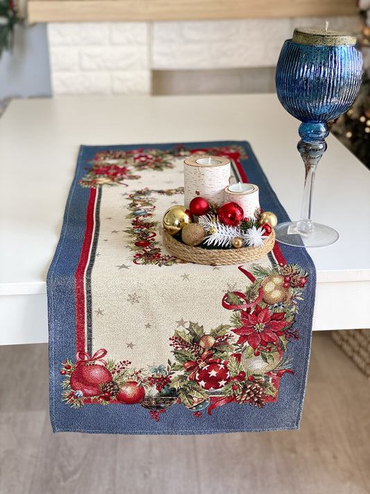 Christmas Tapestry Table runner «Festive mood» With microfibre & silver lurex