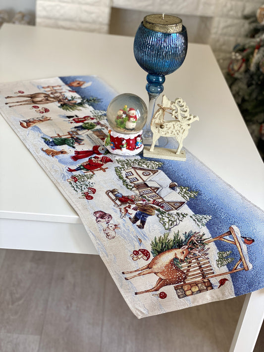 Christmas Tapestry Table runner «Winter fun» without lurex