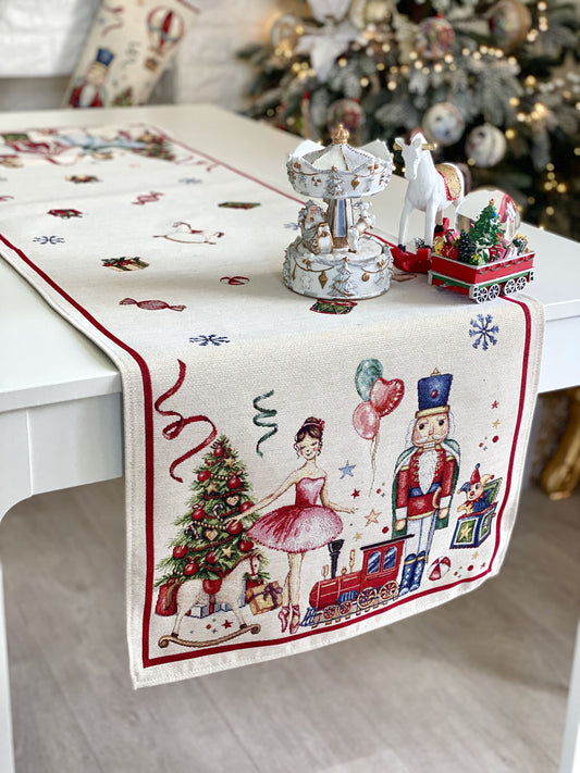 Christmas Tapestry Table runner «Nutcracker» With microfibre & silver lurex