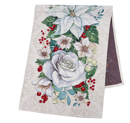 Christmas Tapestry Table runner «Christmas Flower» with silver thread