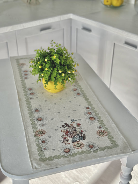 Easter tapestry table runner «Bunny in daisies» with microfibre