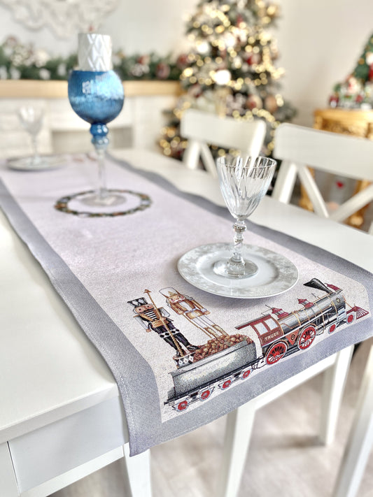 Christmas Tapestry Table runner «Grey Nutcracker» without lurex