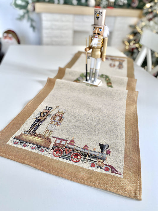 Christmas Tapestry Table runner «Gold Nutcracker» with golden thread