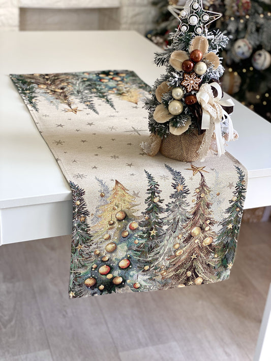 Christmas Table Runner «Evergreen Magic» with Golden Lurex - Luxury Tapestry