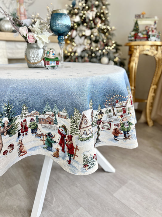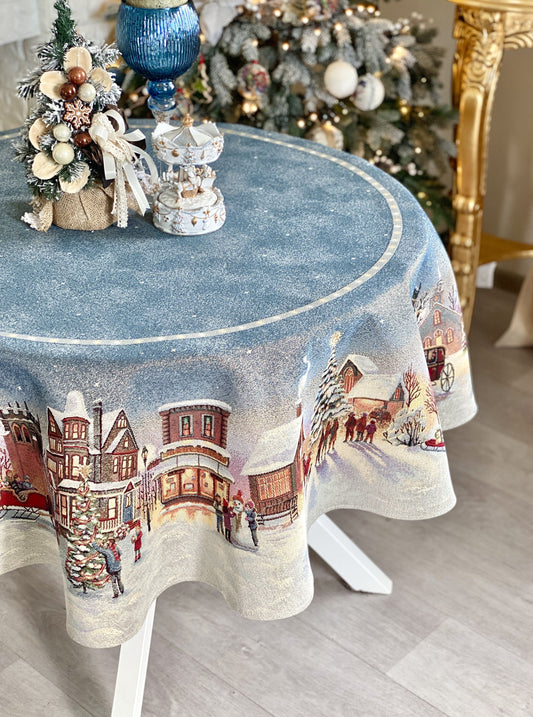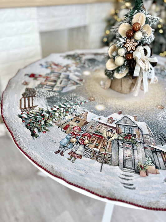 Christmas Round Tablecloth «Magical Winter Eve» - Luxury Tapestry