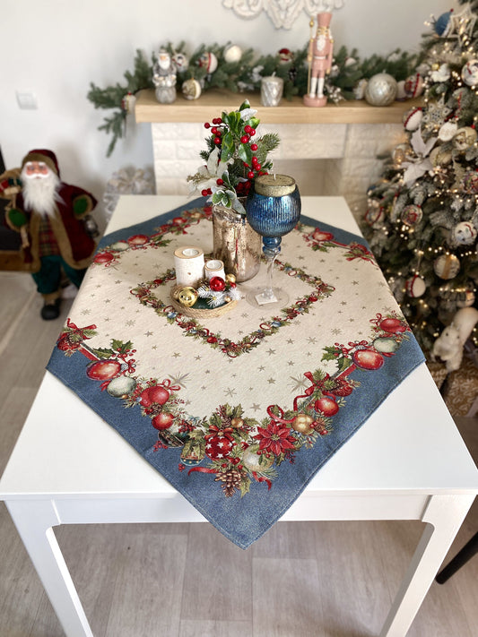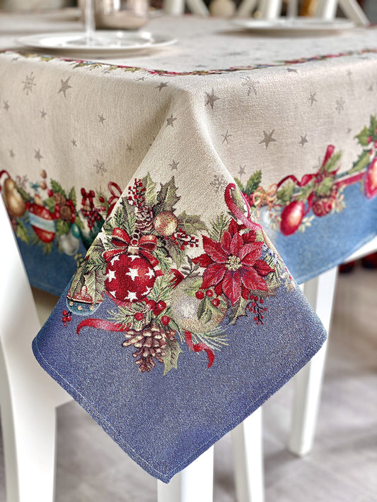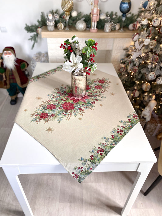 Christmas Tablecloth «Holly & Ivy Charm» with Silver Lurex - Luxury Tapestry