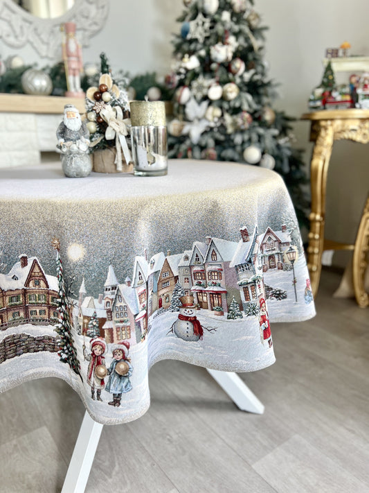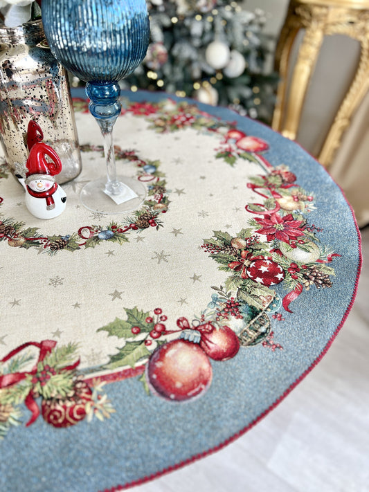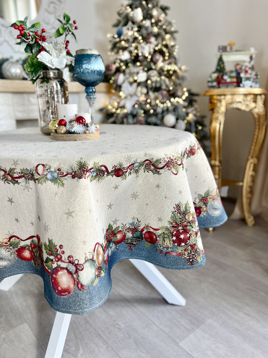 Christmas Round Tablecloth «Magic of Christmas» with Silver Lurex - Premium Gobelin