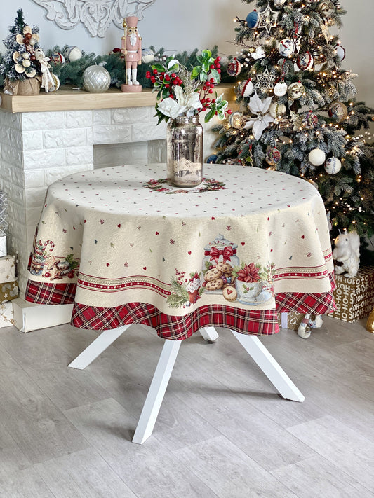 Christmas Round Tablecloth «Sweet Dreams» with Golden Lurex - Premium Gobelin