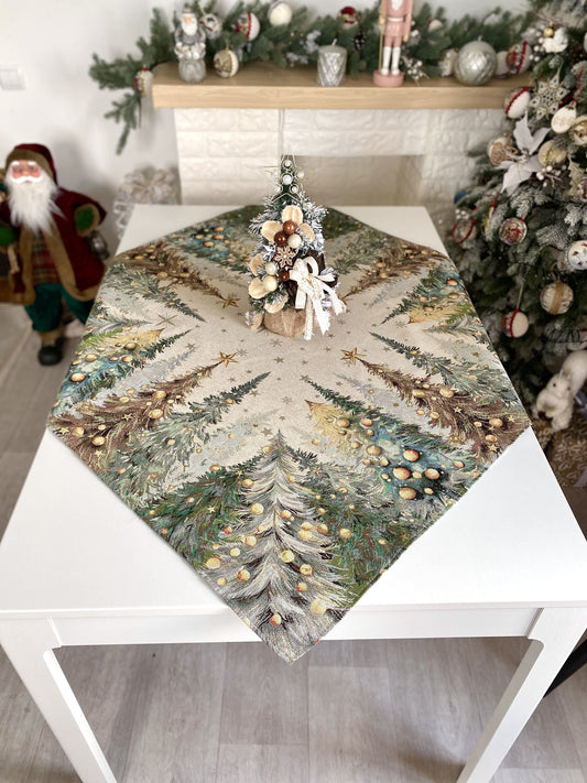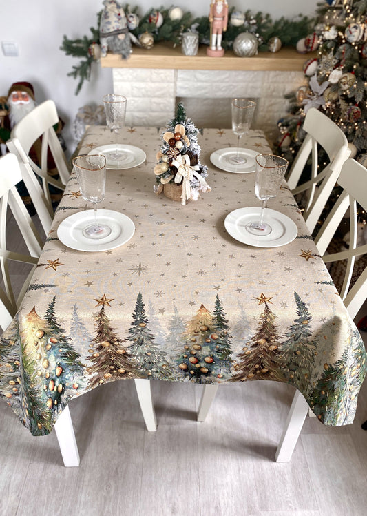 Christmas Tablecloth «Evergreen Magic» with Golden Lurex - Luxury Tapestry