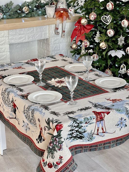 Christmas tapestry tablecloth «Winter fun» without lurex