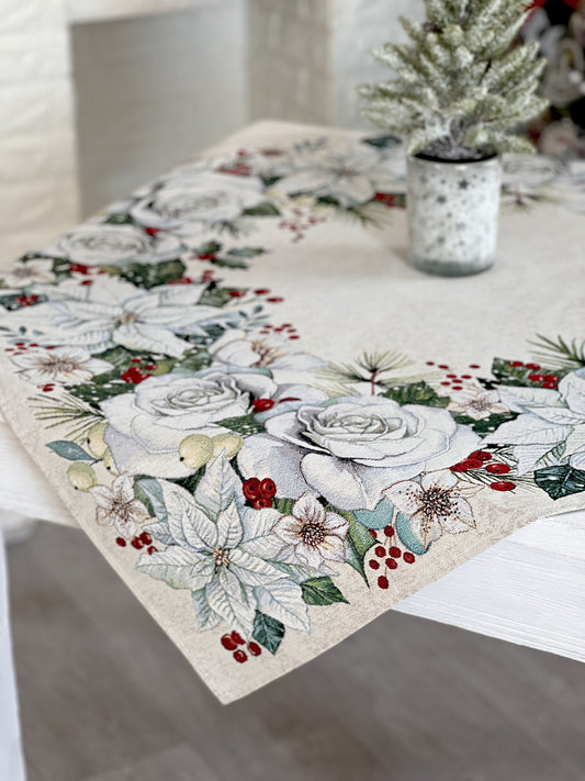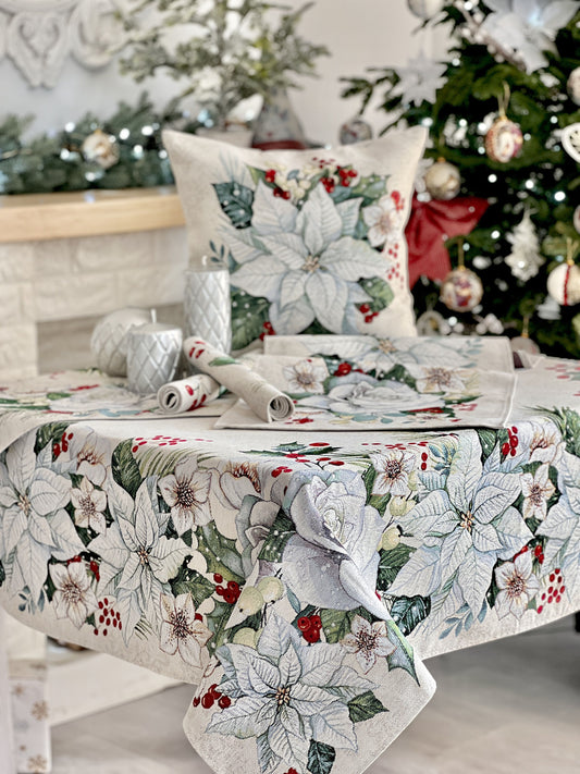 Christmas tapestry tablecloth «Christmas Flower» with silver thread