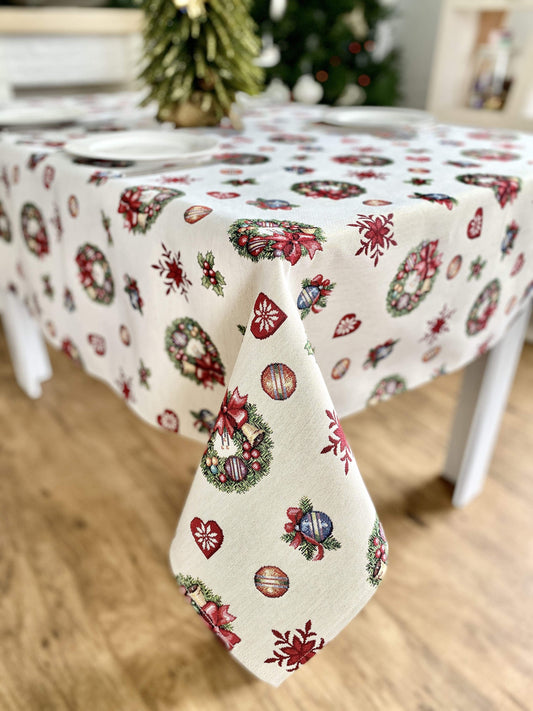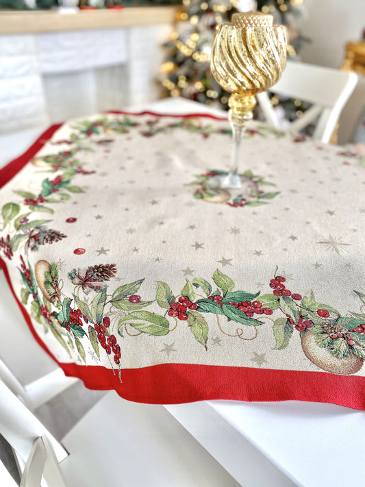 Christmas tapestry tablecloth «Christmas garland» with golden thread