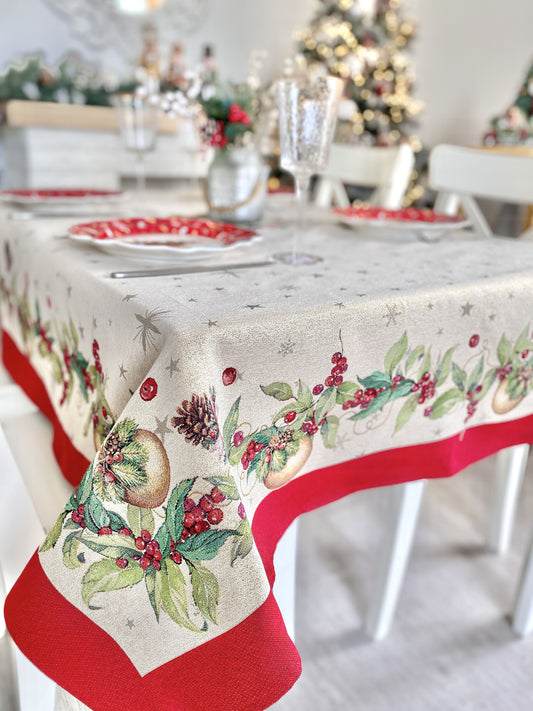 Christmas Tablecloth Double-sided "Jingle Bells" (silver lurex)