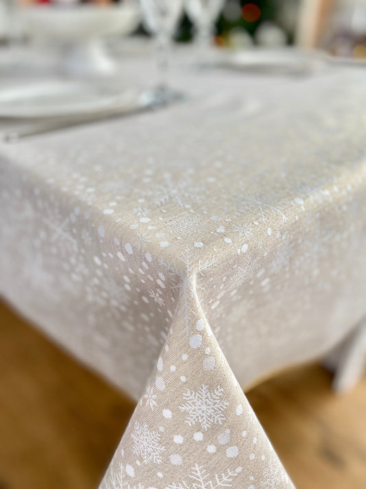 Christmas Tablecloth Double-sided with Teflon coating "Snowflake" (silver lurex)