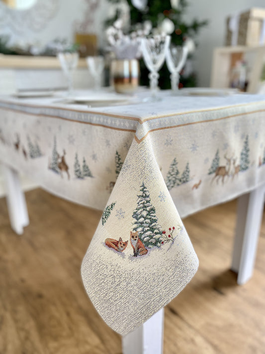 Christmas tapestry Tablecloth "Forest tale" with golden thread