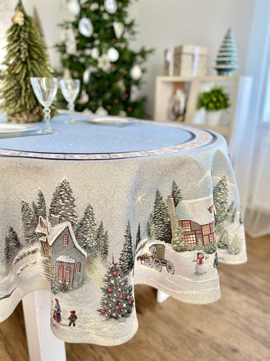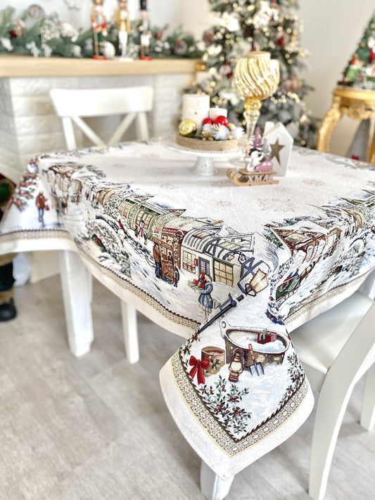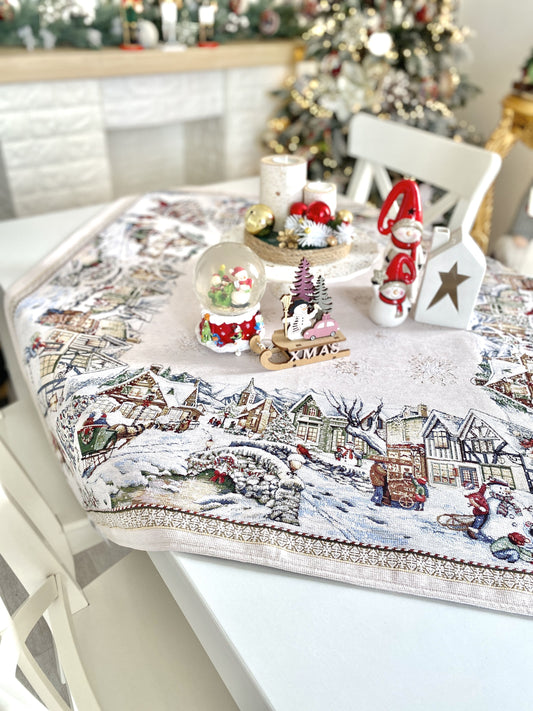 Christmas tapestry tablecloth «Snow village» With microfibre & silver lurex