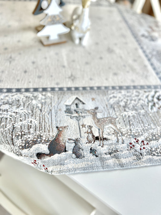 Christmas tapestry tablecloth «Snow family» with silver thread