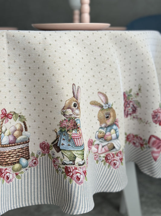 Round Easter tapestry tablecloth «Bunny in Roses»