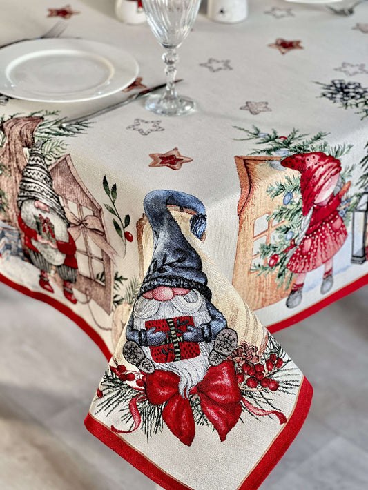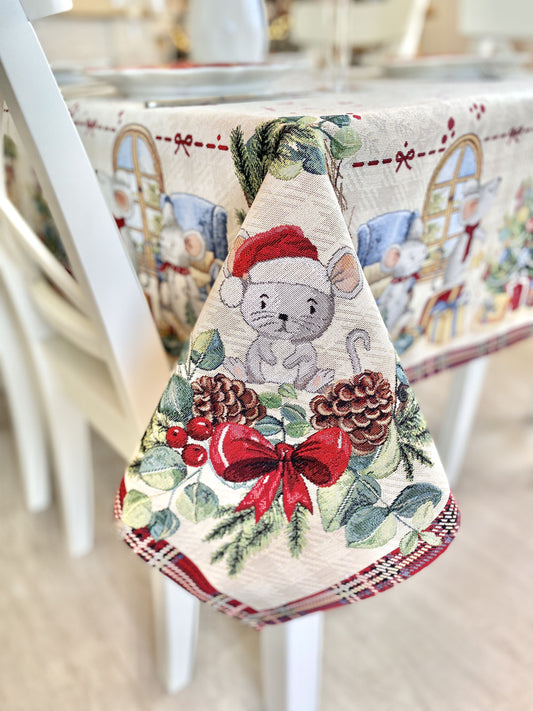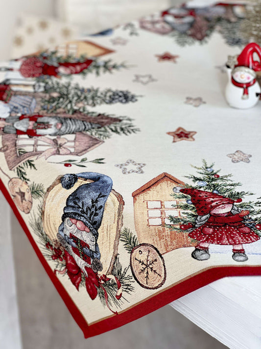 Christmas tapestry tablecloth «Xmas preparations» With silver lurex