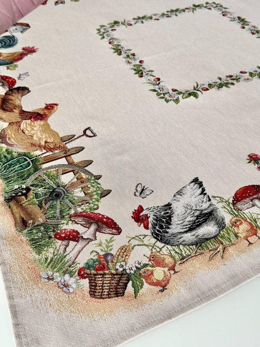 Tapestry tablecloth «Rooster and hens»