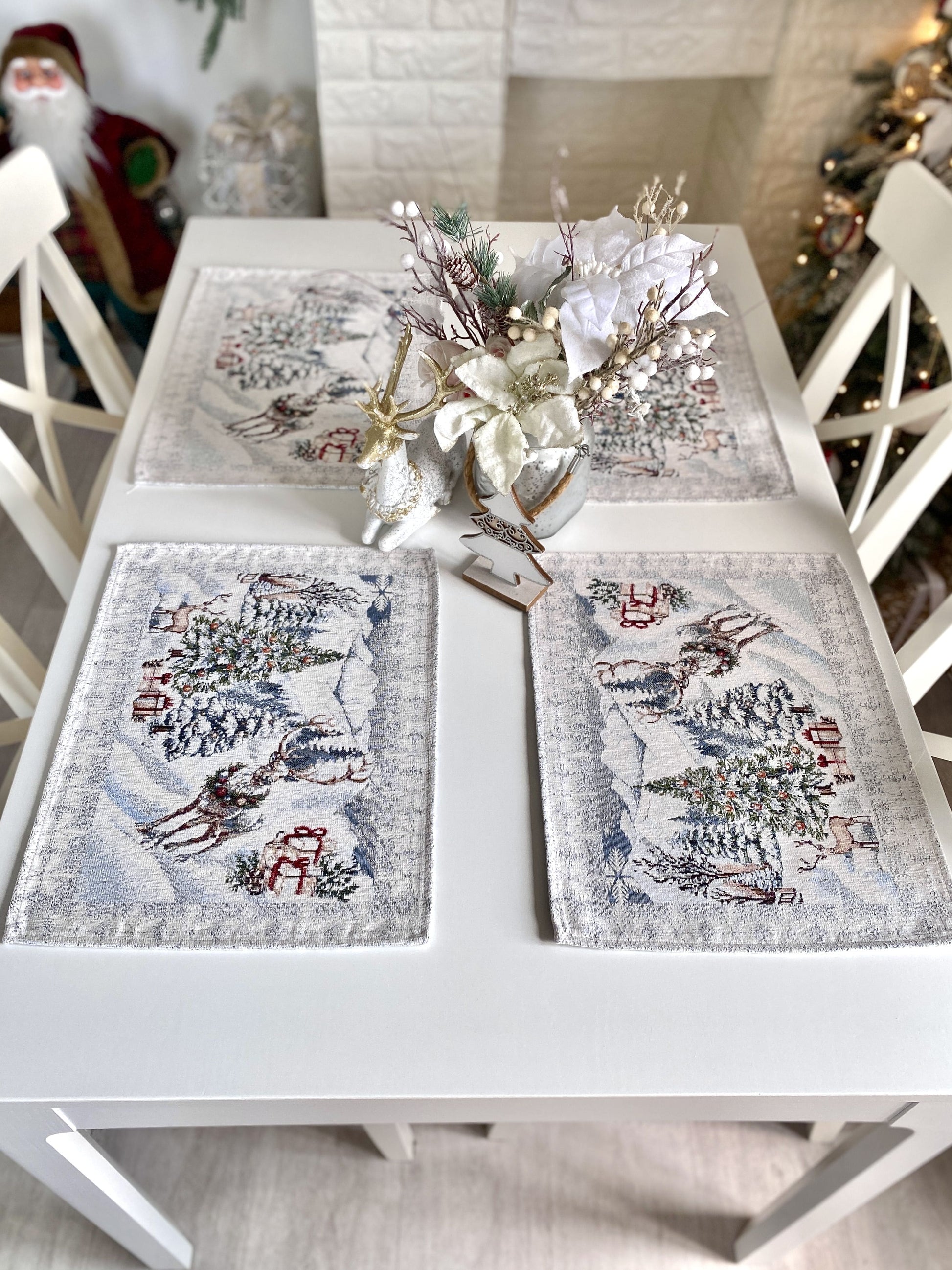 Christmas Placemat set «Snowy Cabin Charm» with Microfibre - Premium Gobelin