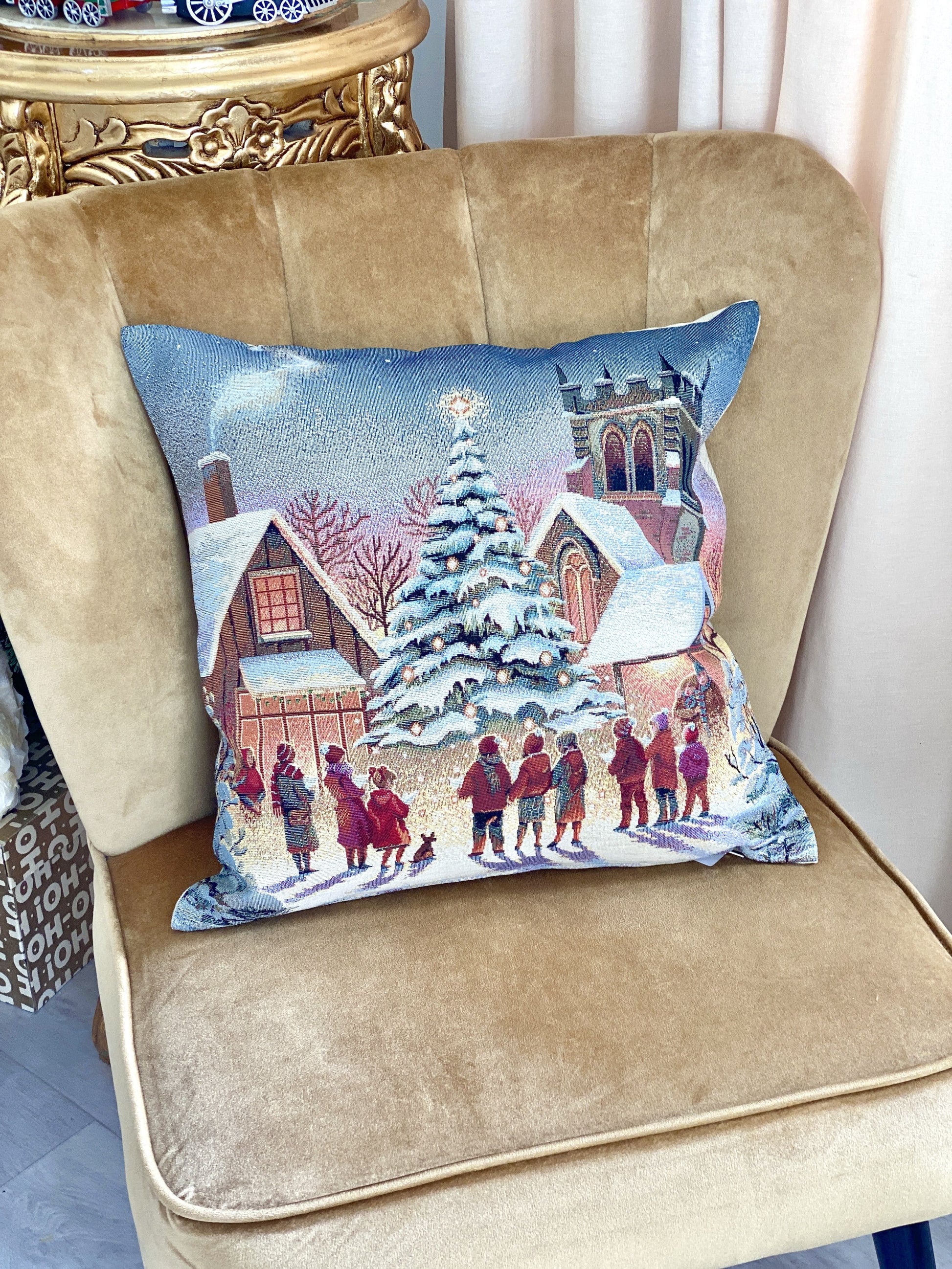 Christmas Cushion cover «Enchanted Carol Nights» with Golden Lurex - Luxury Tapestry