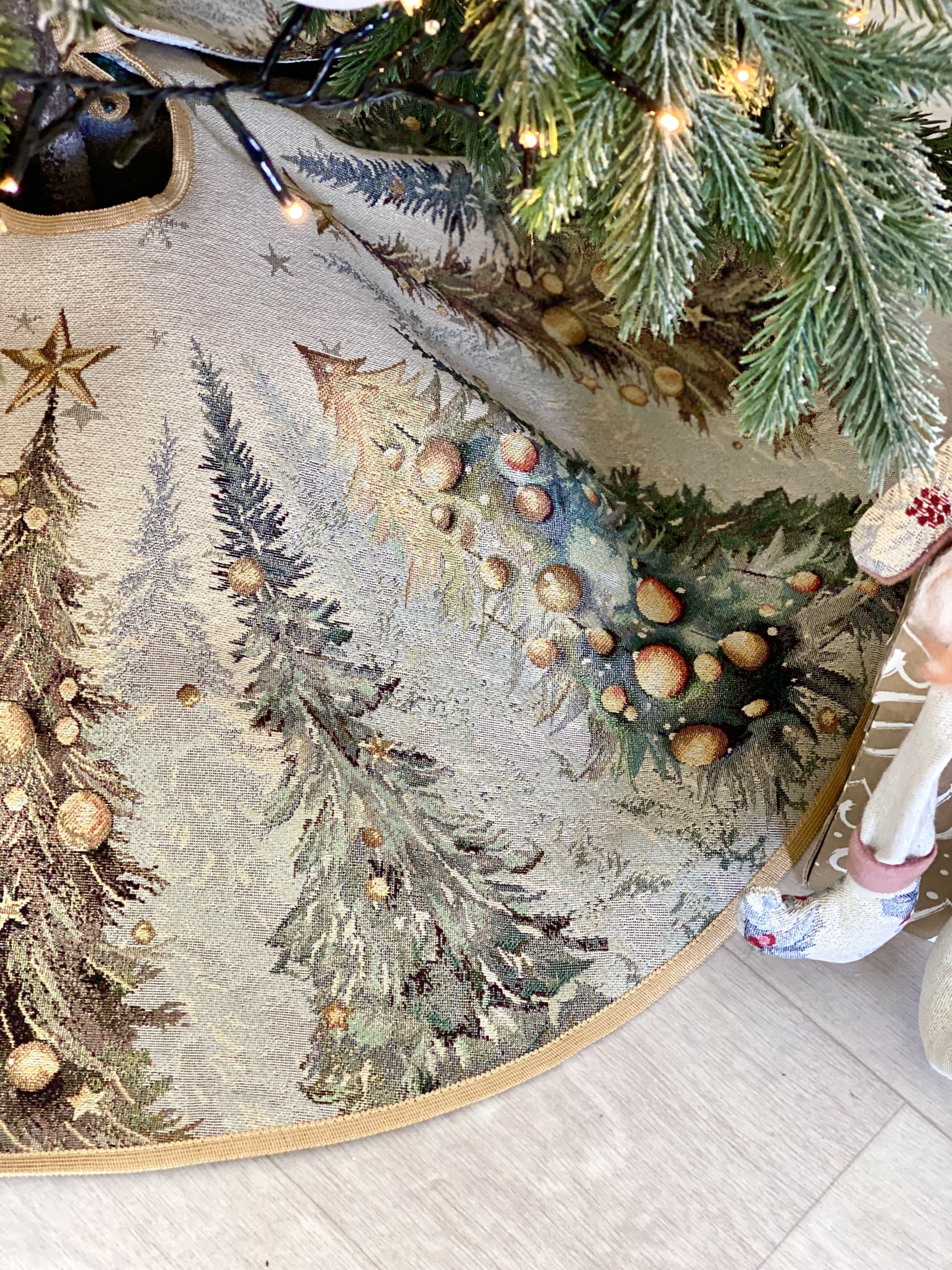 Christmas Tree skirt «Evergreen Magic» with Golden Lurex - Luxury Tapestry